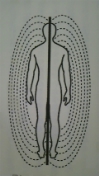 人も天界と地球をつなぐ二元性の中にあり、上図右のように真ん中に管が通っていて、上下からエネルギーが出入りし、肉体の周りを循環しているのです。