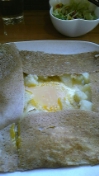 ガレットランチ、チーズ&ポテトです。サラダとデザート(今日はリンゴのシフォンケーキでした)、ドリンクがついて、1000円。月曜限定(多分)で、自家製パンもありましたよ。
