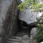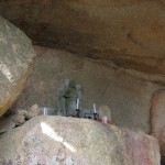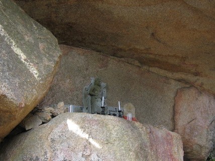途中、奇岩や巨石が多く、お地蔵さんや石像が祀られている箇所も多いです。右はくぐり岩と呼ばれる奇岩。