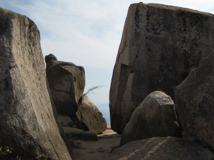 弥山山頂にはさらに奇岩や巨石が沢山あります。残念ながら、展望台はリニューアル工事中。しばし、休憩後、下山。