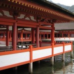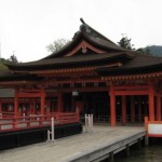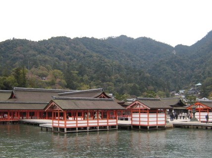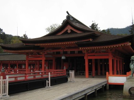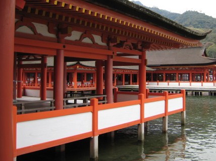 厳島神社は海上に造られているとは聞いていたものの、本殿は陸上にかかっているんだと思っていたのですが、本当に全部、海上に造られてあり、驚きました