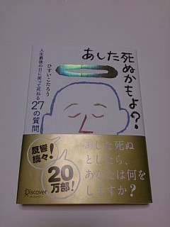 」 とふと思い立ち、行くと、当初、考えていた(予想していた)本ではなく、立ち止まって見た本のタイトルが 『あした死ぬかもよ? 人生最後の日に笑って死ねる27の質問』ひすいこたろう著 だったのです