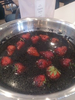 表面に油膜みたいなものが張っているのが判ると思いますが、これは麻炭の効果により、溶かされて出て来たイチゴの表面に付いていた農薬だそう