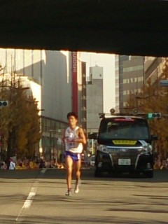 なかなか選手が走り去る速度が速くて、写真が撮れず、やっと撮影できたのが日本体育大学のアンカー小野木君でした