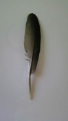準備を大体終えてふと携帯に目をやると、私のこげ茶色の携帯の上に羽根が置いてありました。